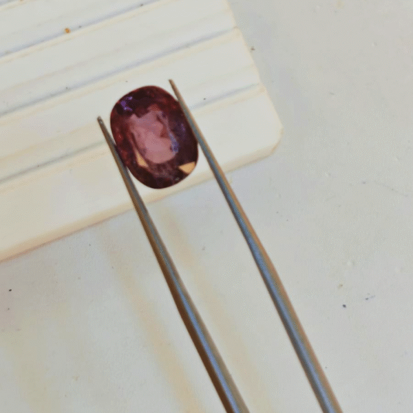 Weight: 7.92 ratti (1.44 gram), beautiful pinkish-red hue
