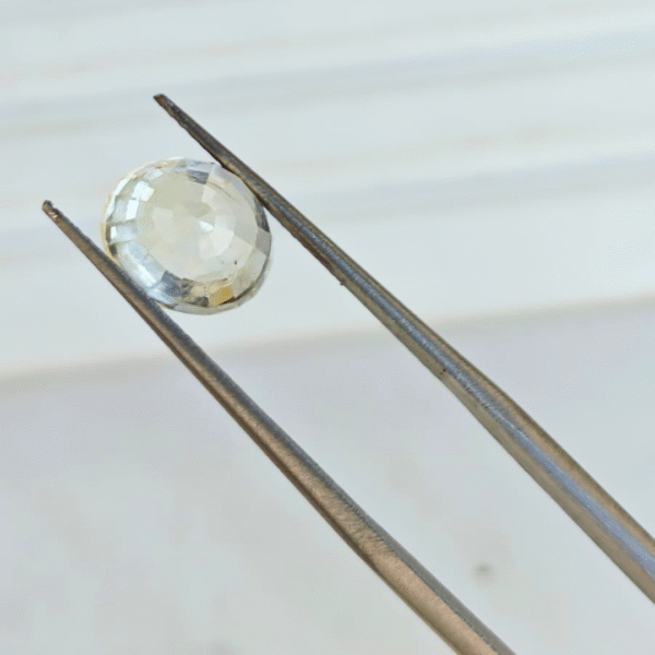 This premium 5.44 ratti (0.99 gram) Yellow Sapphire is highly revered in Vedic astrology as the gemstone of Jupiter—the planet of wisdom, wealth, and divine guidance. Known as Pukhraj, it is believed to enhance intellectual abilities, fortune, and harmonious relationships. Natural and untreated, this gemstone is certified for purity and authenticity. Its lustrous yellow tone symbolizes clarity and optimism. Traditionally worn in a gold ring on the index finger on a Thursday, it delivers the best results when energized as per astrological rituals. Ideal for those seeking academic, financial, or personal growth.